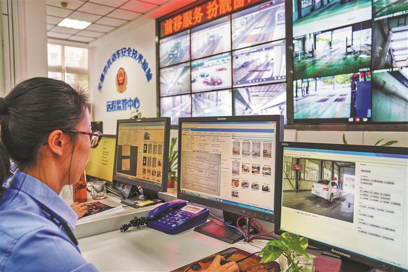 “智慧監(jiān)管”讓科技提升監(jiān)管效能。為有效加強(qiáng)對機(jī)動車檢驗業(yè)務(wù)的監(jiān)管、實現(xiàn)全過程數(shù)據(jù)監(jiān)管,車管所上線了機(jī)動車檢驗智慧監(jiān)管系統(tǒng),利用人工智能、大數(shù)據(jù)等技術(shù),解決當(dāng)前車輛檢驗中存在的車檢數(shù)據(jù)造假失真、部分車輛替檢代檢、非法中介管理難等問題,打造了“事前預(yù)警、事中監(jiān)管、事后分析”的全方位檢驗監(jiān)管新模式。