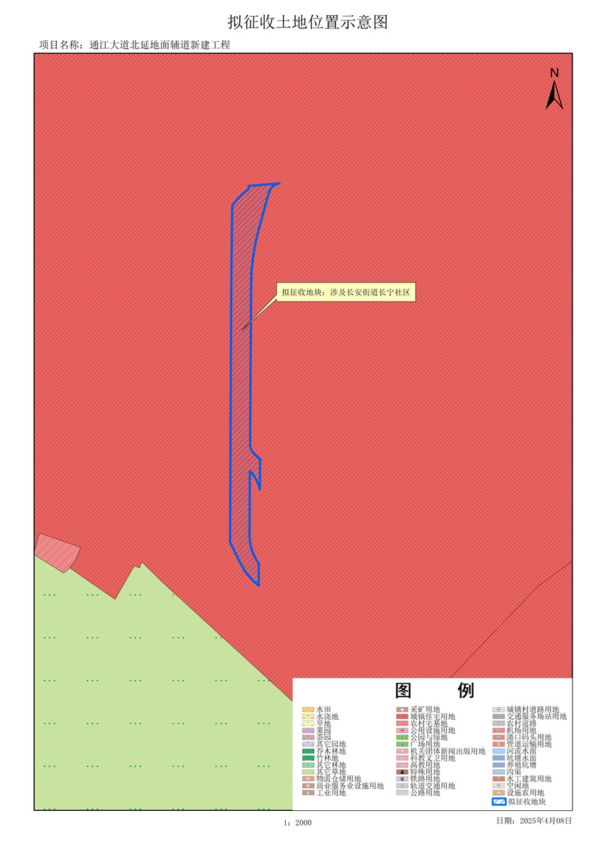 由政府組織實施的能源、交通、水利、通信、郵政等基礎(chǔ)設(shè)施建設(shè)需要用地,項目名稱為通江大道北延地面輔道新建工程。