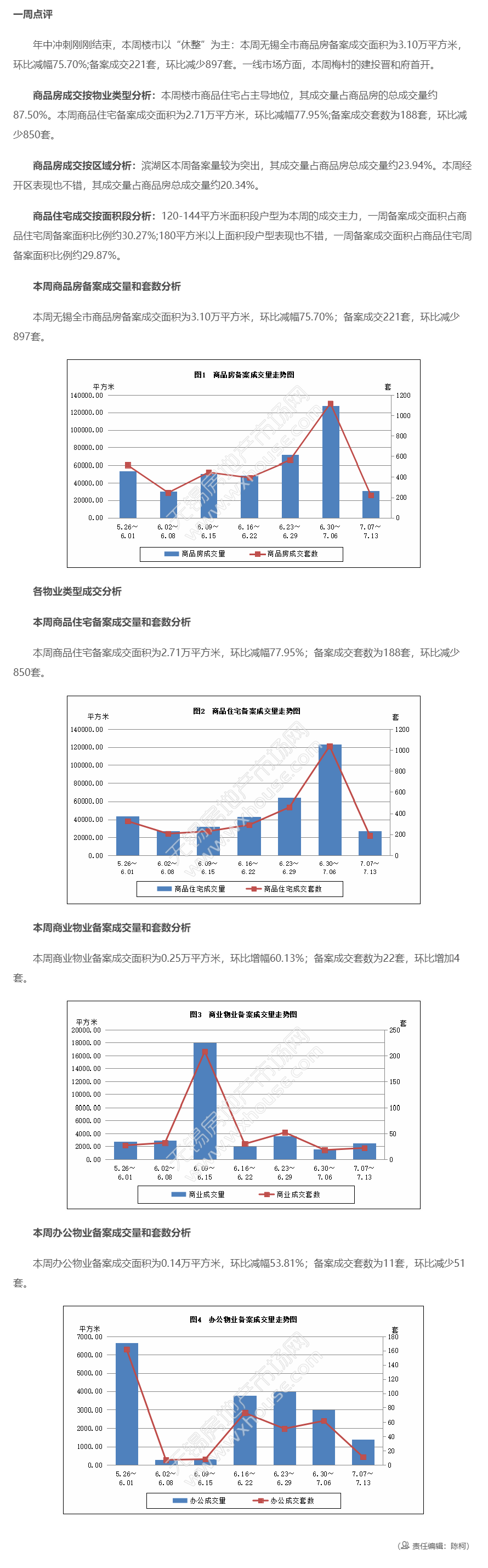 7.07~7.13無錫商品房一周備案成交3.10萬平方米 |