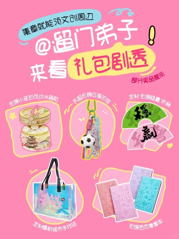 (獎(jiǎng)品豐富多彩,有蘇超無錫應(yīng)援包掛、小籠包可動(dòng)冰箱貼、定制“無錫穩(wěn)贏”折扇等……具體獎(jiǎng)品樣式,請(qǐng)關(guān)注@無錫文旅小紅書官方賬號(hào)筆記)