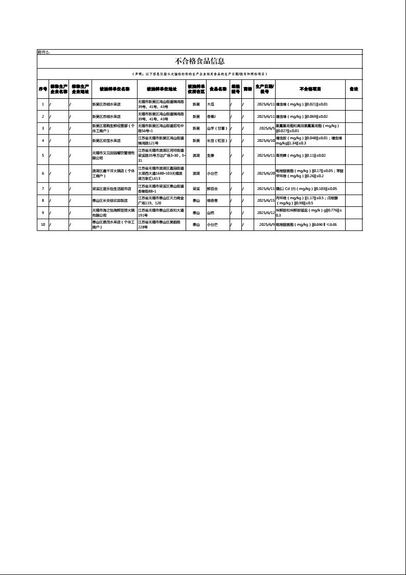 2025年7月,按照《2025年無錫市食品安全抽檢監(jiān)測計劃》安排,無錫市市場監(jiān)督管理局對無錫市食品生產(chǎn)、流通、餐飲全環(huán)節(jié)開展食品安全監(jiān)督抽檢?,F(xiàn)公示部分抽檢食品255批次,其中不合格10批次。公示的被抽檢食品范圍涉及食用農(nóng)產(chǎn)品、調(diào)味品、乳制品、炒貨食品及堅果制品、餐飲食品、食用油、油脂及其制品等15個食品大類。(詳見附件)