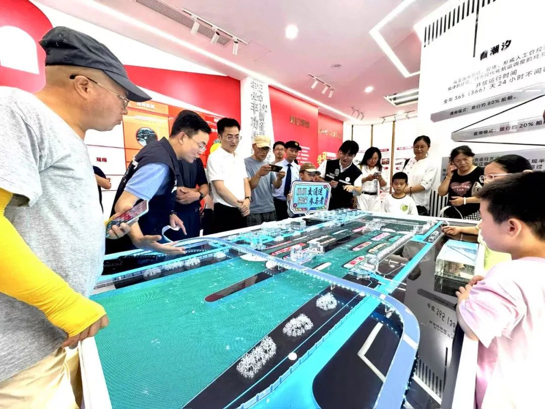 沿江陰船閘閘室登上船閘天橋,市民們直觀了解了船閘通閘、套閘原理和船舶過(guò)閘智能化運(yùn)作流程。在船閘職工之家歷史文化展廳,市民們傾聽(tīng)船閘的悠久歷史,感受到船閘作為水上交通樞紐的重要作用,為“水運(yùn)江蘇”建設(shè)作出了突出貢獻(xiàn)。