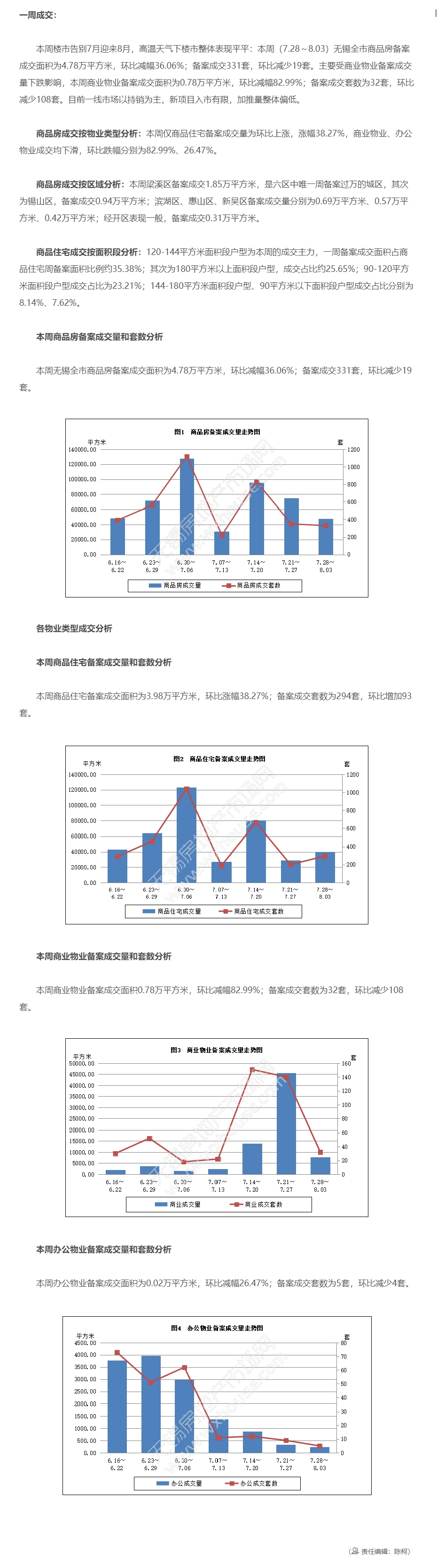 7.28~8.03無錫商品房一周備案成交4.78萬平方米 |