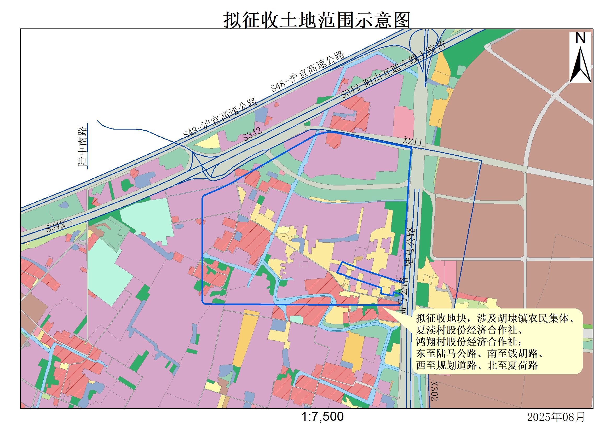 本次擬征收地塊為陸馬公路與錢胡路交叉口西北側(cè)地塊,位于無錫市濱湖區(qū)胡埭鎮(zhèn)農(nóng)民集體、胡埭鎮(zhèn)夏瀆村股份經(jīng)濟(jì)合作社、胡埭鎮(zhèn)鴻翔村股份經(jīng)濟(jì)合作社范圍內(nèi)。擬征收土地位置詳見附圖。