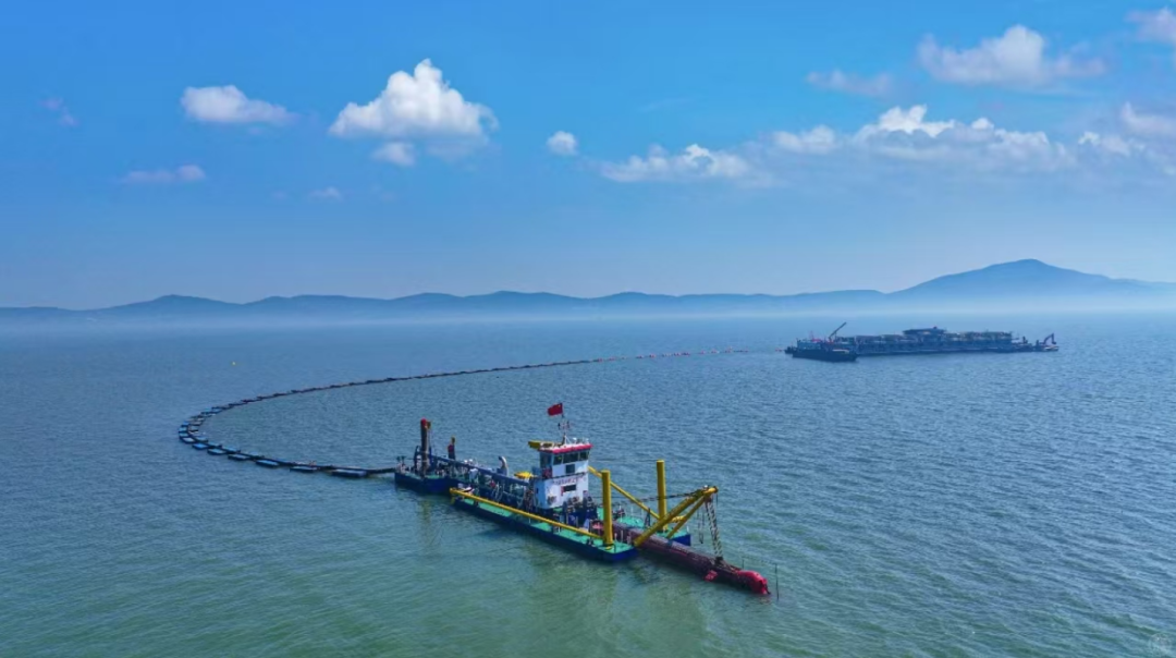 內源減負,核心在泥。清晨,“太湖之光”一體化清淤平臺宛如水上“巨無霸”,在宜興水域開始了它的清潔使命。這套治水重器開創(chuàng)了國內江河湖庫治理“零土地占用、零二次污染”的全新模式:1號船如同“粗篩大師”,先將雜質有效分離;2號和3號船則化身“凈化大師”,專注于高難度的泥水分離。單日高達8000立方米的清淤能力,讓底泥清淤效率大幅提升。市水利局負責人介紹,眼下全市6個生態(tài)清淤工程正全速推進,截至目前累計完成421.76萬立方米清淤量,占年度計劃任務的70.3%,有效削減了內源污染,成為遏制湖泛災害的治本之策。