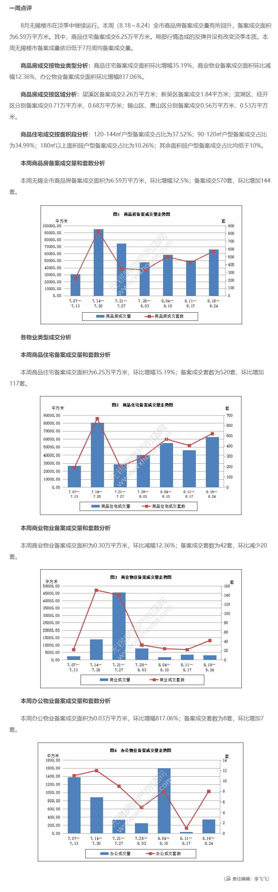 內(nèi)容概述 | 8.18~8.24無(wú)錫商品房一周備案成交6.59萬(wàn)平方米 |