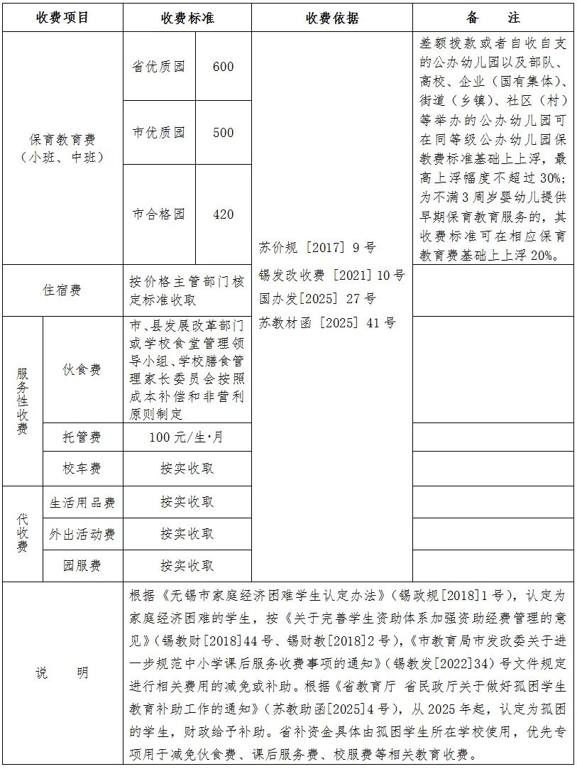 無錫市區(qū)公辦幼兒園收費(fèi)表