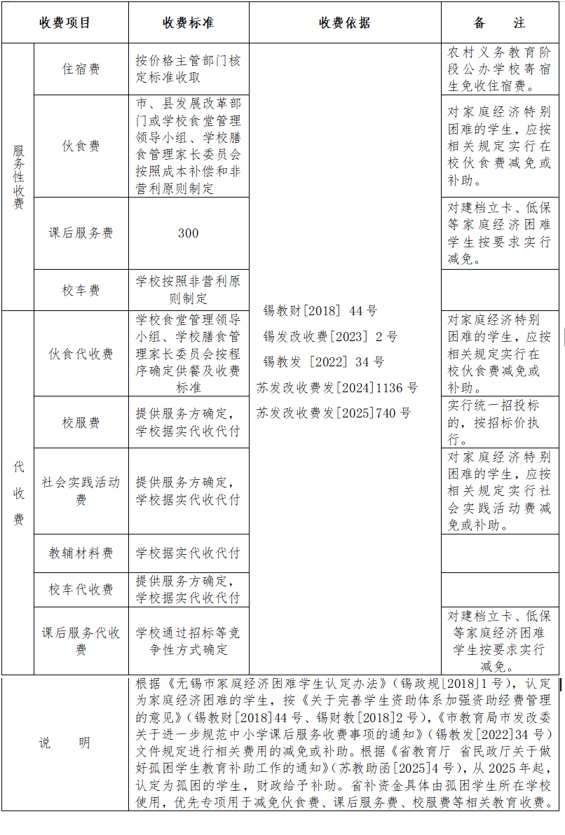 無錫市區(qū)民辦中小學(xué)(幼兒園)收費(fèi)說明