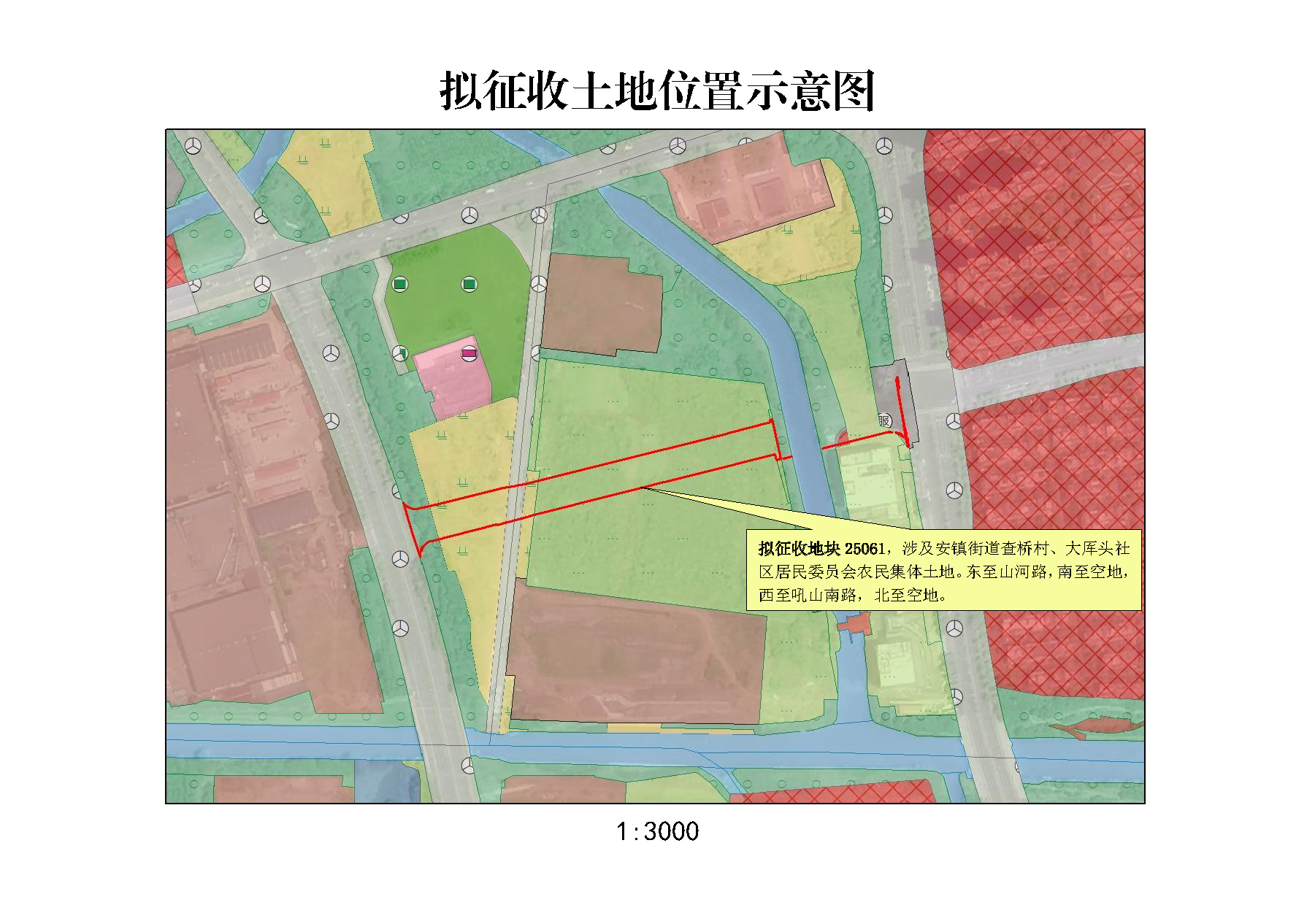 本次擬征收土地位于安鎮(zhèn)街道查橋村、大厙頭社區(qū)居民委員會(huì)農(nóng)民集體范圍內(nèi)。擬征收土地位置詳見附圖。