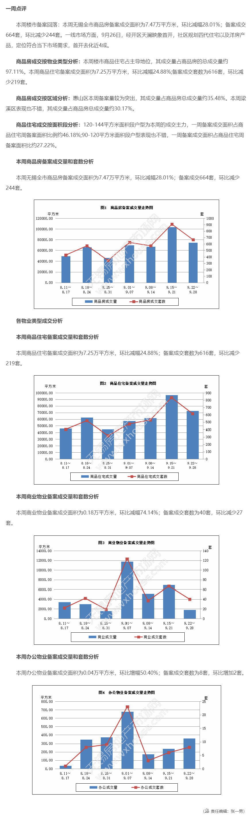 內(nèi)容概述 | 9.22~9.28無(wú)錫商品房一周備案成交7.47萬(wàn)平方米 |