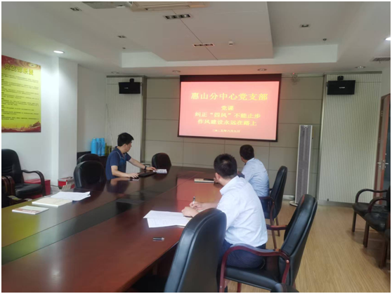 為激勵(lì)惠山分中心黨支部黨員干部繼續(xù)發(fā)揚(yáng)黨的光榮傳統(tǒng),深入推進(jìn)作風(fēng)革命、效能革命,6月9日,惠山分中心黨支部崔屹同志為全體黨員上了一堂糾正“四風(fēng)”不能止步,作風(fēng)建設(shè)永遠(yuǎn)在路上的黨課。