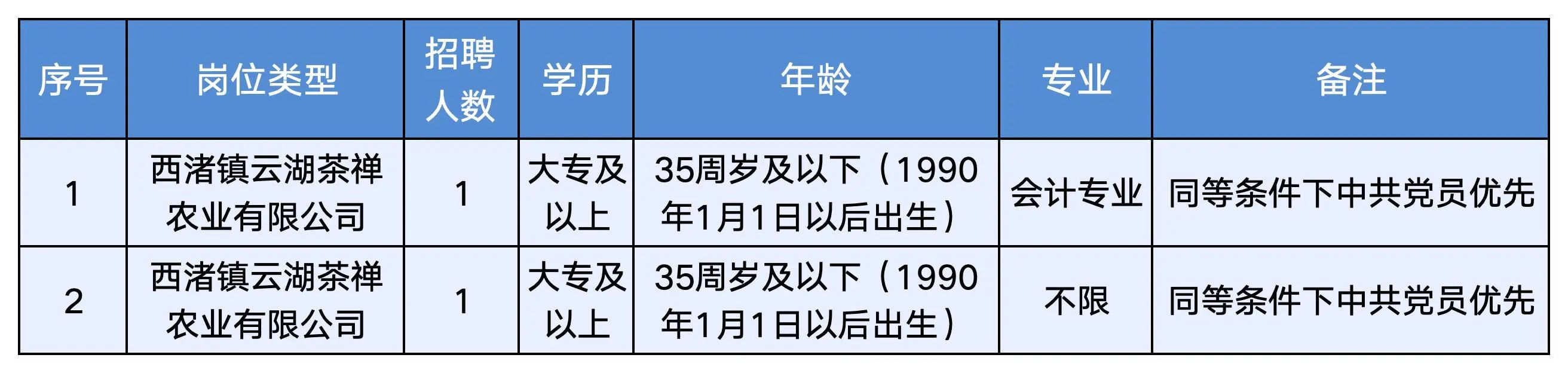 5、具有崗位要求的其他條件(詳見下方《2025年西渚鎮(zhèn)公開招聘云湖茶禪農(nóng)業(yè)有限公司工作人員崗位簡(jiǎn)介表》)。