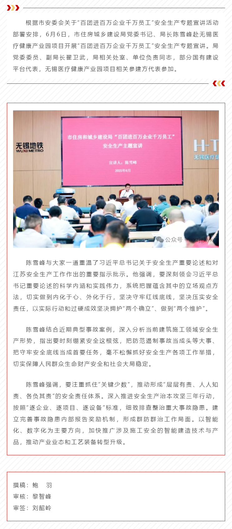 | 內(nèi)容概述 | 陳雪峰到施工項(xiàng)目一線開(kāi)展安全生產(chǎn)專題宣講 | ||||