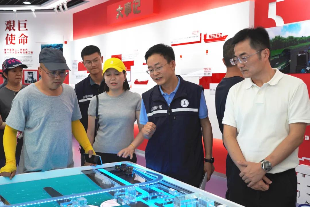 沿江陰船閘閘室登上船閘天橋,市民們直觀了解了船閘通閘、套閘原理和船舶過(guò)閘智能化運(yùn)作流程。在船閘職工之家歷史文化展廳,市民們傾聽(tīng)船閘的悠久歷史,感受到船閘作為水上交通樞紐的重要作用,為“水運(yùn)江蘇”建設(shè)作出了突出貢獻(xiàn)。